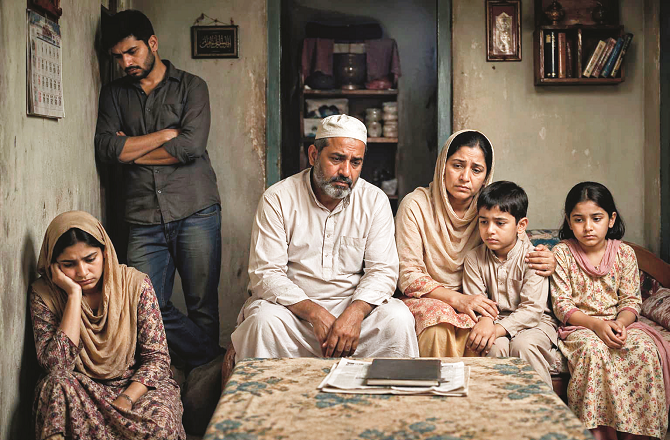 سامنے دیوار کو شعلے کی روشنی نے چمکیلے موتیوں سے جڑی جھالر میں بدل دیا۔ اس کے پیچھے اسے صاف نظر آیا جیسے ایک خوش و خرم خاندان کے لوگ دستر خوان کے گرد بیٹھے ہیں اور دستر خوان پر کھانے کی پلیٹیں لگی ہیں۔ کٹوروں میں انواع و اقسام کے کھانے ہیں۔