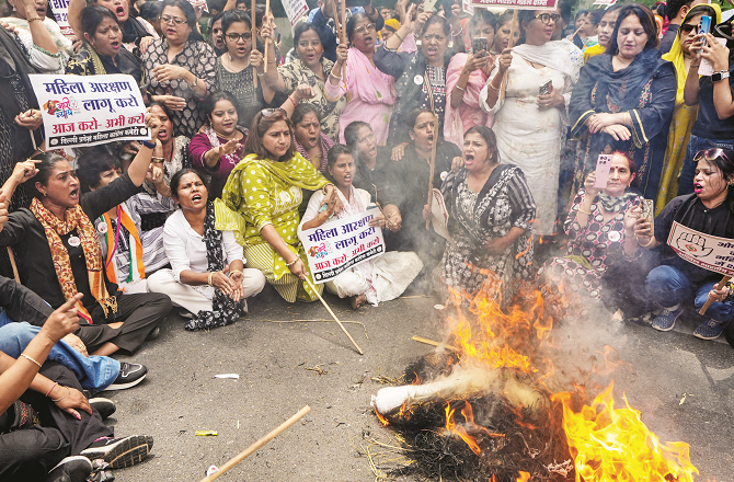 این ڈی اے کی خاتون اراکین پارلیمان آئینی ترمیمی بل کی ناکامی کے خلاف احتجاج کرتے ہوئے