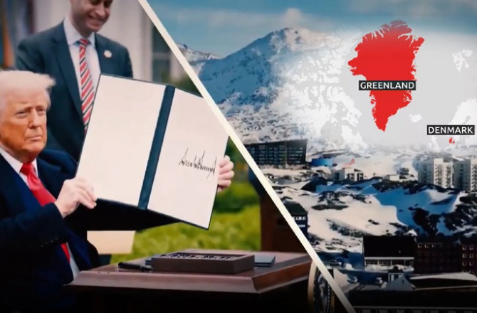 ٹروتھ سوشل پر ایک پوسٹ میں ٹرمپ، نائب صدر جے ڈی وینس اور وزیرِ خارجہ مارکو روبیو کے ساتھ گرین لینڈ میں امریکی پرچم لہراتے ہوئے نظر آرہے ہیں۔ قریب ہی ایک بورڈ پر لکھا ہے: ”گرین لینڈ، امریکی علاقہ، قائم شدہ ۲۰۲۶ء۔“