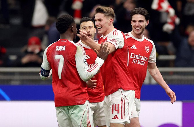 برازیلین فارورڈ گیبریل جیسس کی شاندار واپسی اور دو گولز کی بدولت آرسنل نے یوئیفا چیمپئن لیگ کے اہم معرکے میں انٹر میلان کو ان کے ہوم گراؤنڈ پر ۱۔۳؍گول سے شکست دے دی۔ اس فتح کے ساتھ ہی آرسنل نے ٹورنامنٹ کے آخری ۱۶؍ (ناک آؤٹ مرحلے) کے لیے کوالیفائی کر لیا ہے۔